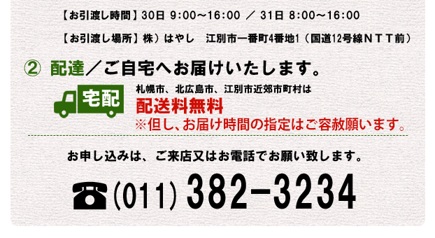 電話でのご注文・お問い合わせは (受付時間 9:00〜17:00)TEL.011-382-3234